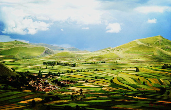 梯田是北方不多見的風光之一,如果不是草原天路,不知道還要跑多遠才能看到這樣的美景。夏天的顏色還只有翠綠色的單一,但依然能看得見分明的層次。