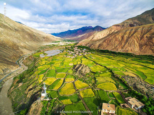 “八宿”藏語意為“勇士山腳下的村莊”。八宿屬三江流域高山峽谷地帶。我們在318國道上一路飛馳,來到八宿,已經天黑,只是黃昏前看到的綠色山谷,和周邊光禿禿紅色的山體形成鮮明的對比,于是第二天一早決定來航拍一次,俯瞰這奇特的地貌。