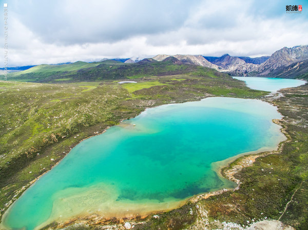 姊妹湖位于巴塘到理塘這一段的318國道上。這片群山中有一千多個大大小小的海子,故名“海子山“。姊妹湖是其中兩個相鄰的大海子。陽光下我們在湖邊放飛無人機,兩個湖泊盡收眼底。由于礦物質含量多,湖水泛著牛奶藍色,在背后的雪山映襯下,顯得非常靈動。