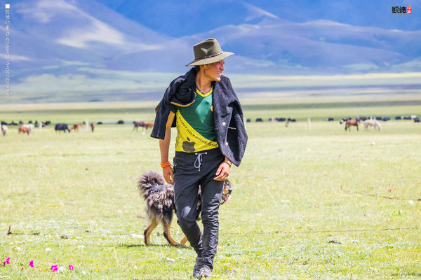 如此遼闊的場景,讓人不禁放聲歌唱。劇組的化妝師婷婷在唱了一曲《青藏高原》,把周邊放牧的藏民朋友們都吸引過來了。大家就像開嘉年華一樣,在草原上一起跳舞。其實蠻羨慕牧民們的生活,自由自在,奔放熱情。