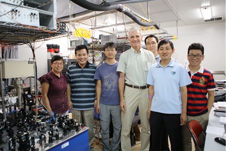 圖2:諾獎獲得者沃爾夫岡·卡特勒教授與中國計量院時頻所光學頻率標準實驗室科研人員合影