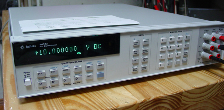 圖7 Agilent 3458A Keithely后來也推出了8位半萬用表2002,這款儀表的突出優勢在于直流電壓檔跟它的很多納伏表一樣具有1nV的靈敏度,電阻檔具有100nOhm的靈敏度,以及-200℃--1820℃溫度測量范圍,并在整個范圍內都保持了最小0.001℃分辨率,保持了8位半模式下最快的測量速度。
